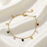 A delicate anklet adorned with multicolour crystal charms that catch the light with every step. The fine chain and playful drops create a graceful yet vibrant silhouette.