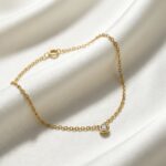 A delicate anklet featuring a single bezel-set crystal that adds a subtle, luminous accent. The fine chain and minimal silhouette create a refined and timeless appeal.