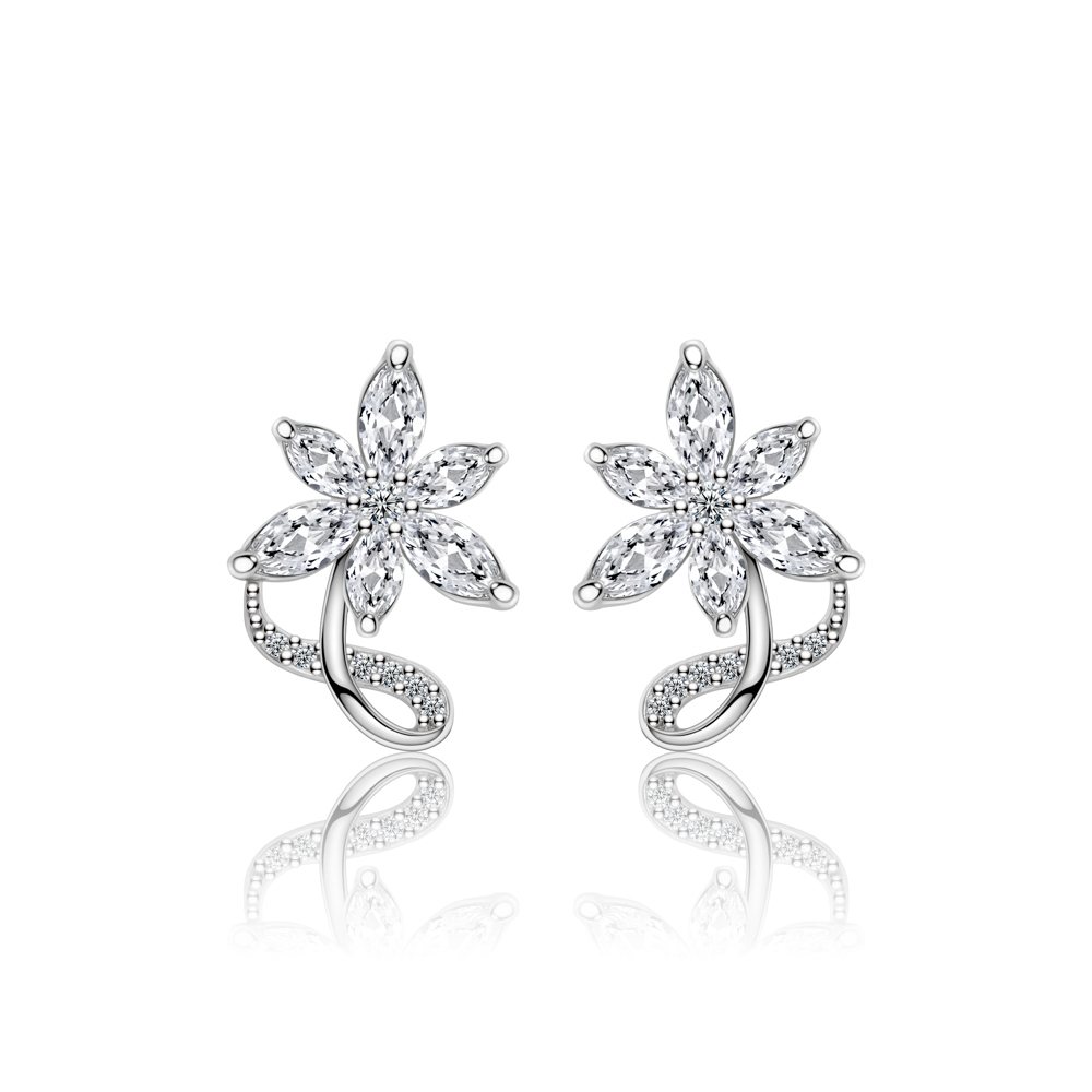 The floral marquise arrangement paired with a curved pavé detail gives these earrings a refined yet whimsical charm. They are lightweight, feminine, and effortlessly elegant for both day and evening wear.