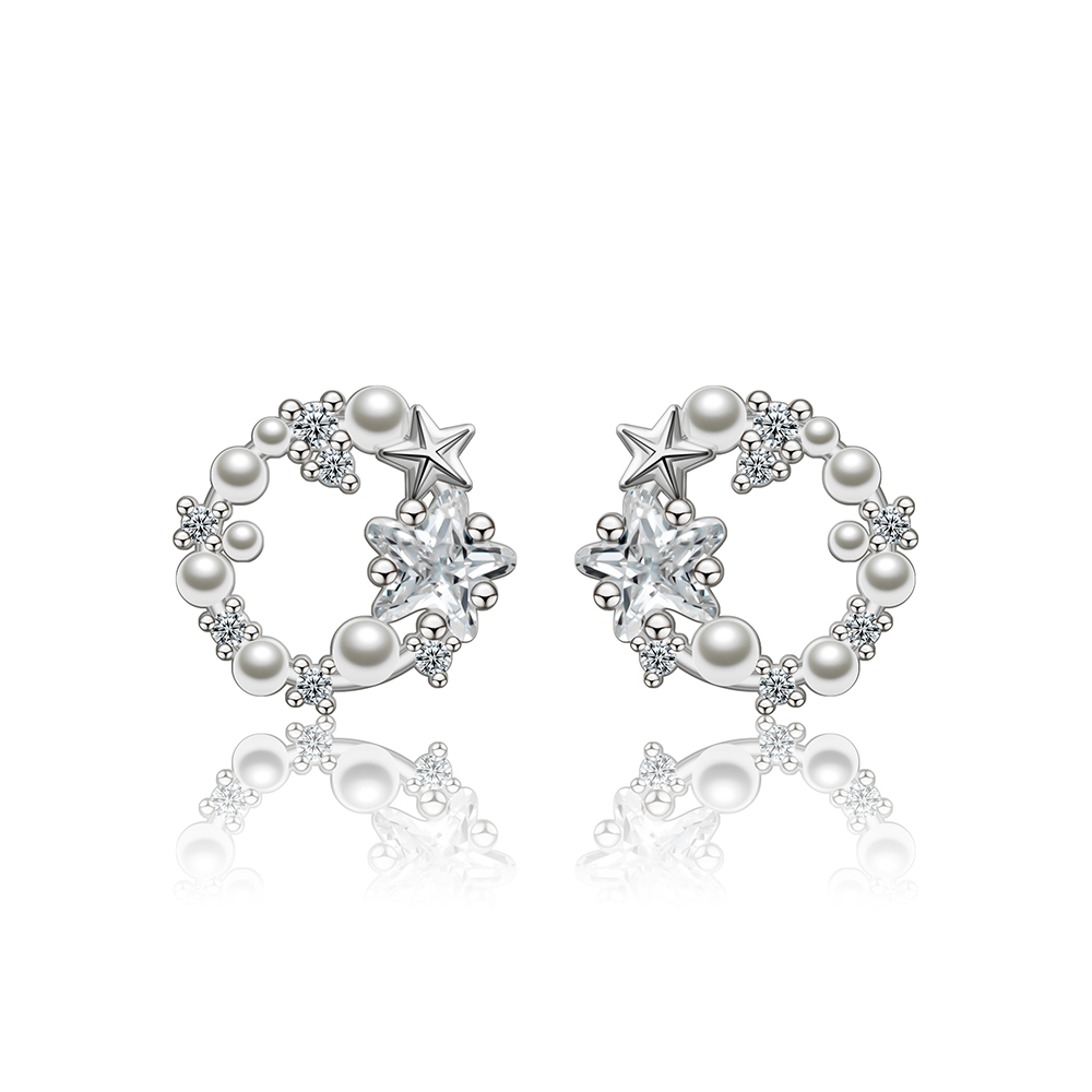 The dainty circle of alternating pearls and zircon stones creates a soft yet radiant silhouette that flatters every ear. With star-shaped motifs adding a magical touch, this piece balances playfulness with elegance effortlessly.