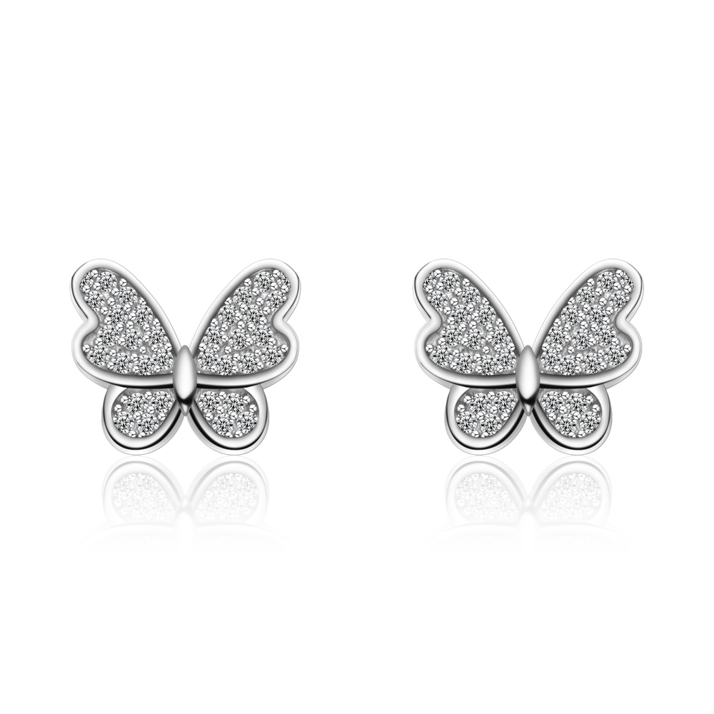 The pavé-set crystals reflect light from every angle, while the symmetrical butterfly shape adds an effortlessly graceful charm to your everyday style.