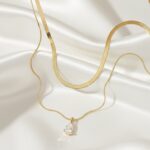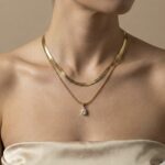 A refined layered design featuring a sleek flat herringbone chain paired with a delicate snake chain and a pear-cut solitaire drop. The subtle contrast of textures creates effortless dimension while maintaining a clean, minimal silhouette. Designed to elevate everyday dressing with understated brilliance.