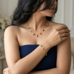 Details & Dimensions: Fine cable chain necklace with bezel-set round and baguette stones; matching chain bracelet with adjustable extender. Lobster clasp closure.
