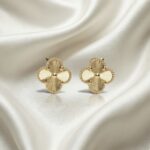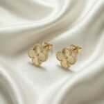 Details & Dimensions: Clover shaped stud earrings with textured finish, push back closure,