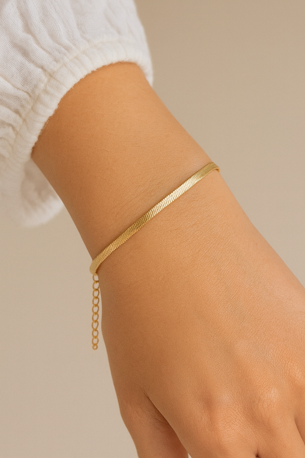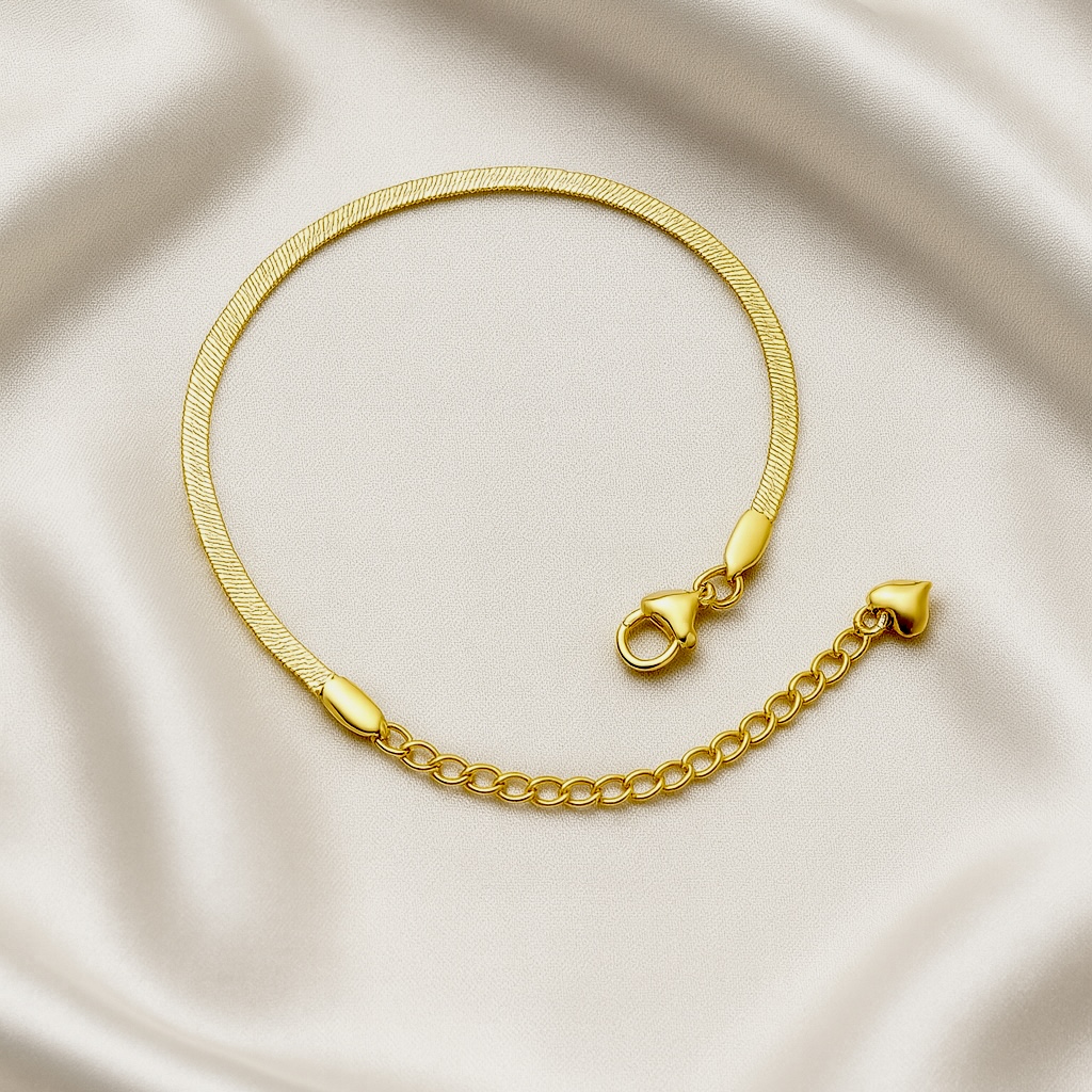 Its sleek snake-chain structure sits delicately on the wrist, offering a soft, weightless feel while making a subtle yet striking statement with its high-polish gold finish.