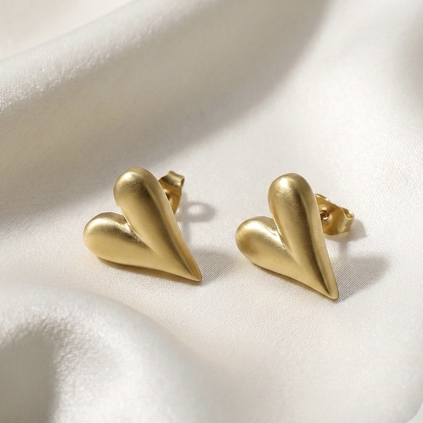 Details & Dimensions: Sculpted heart stud design; smooth matte-polished finish; secure push-back closure; approx. size 1–1.2 cm; lightweight feel;